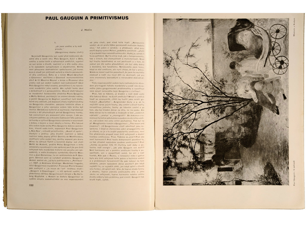 During the late 1930s, while living in Stockholm, Hodin also wrote about French and Scandinavian artists for the Czech journal Free Directions (Volné Směry), contributing from 1937–39. He introduced the work of Gauguin to his Czechoslovak readership, and published a review of the Norwegian artist Edvard Munch. He had first met Munch during 1938, a year after Munch’s retrospective at the Academy of Arts in Stockholm. He later described this meeting in his essay ‘The Forerunner’ published in The Dilemma of Being Modern (1956):