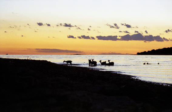 In contrast, young Croatian artist SofijaSilvia records scenes so brief that they seem imagined or staged. A doe in forest stops long enough to look back at the viewer; deer swimming across sea to the island – these moments allow insight that feels intimate and intense. This meeting of imagination and nature is a place that embodies transition.