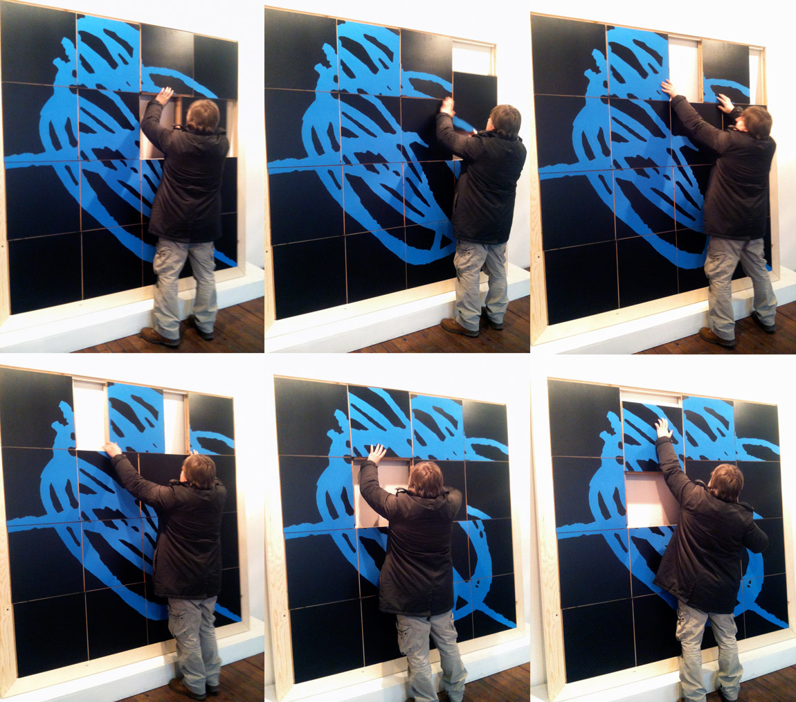 Dimitrijević rearranges the panels on The point of view, 2013