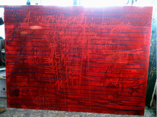 Dimitrijević’s paintings from the 2005-07 contain gestures (script, signs, crosses, lines, marks, smudges, letters and numbers) that will reappear in his later work, but with time they became structurally and formally more sound. Whilst his early canvases are covered with markings that battle each other for supremacy, later works are more harmonious in texture and composition, losing none of the accumulated meanings. Kirk Vanedoe‘s defence of Twombly from 1994 holds true for Dimitrijević. Like Twombly, Dimitrijević works “in the orchestration of a previously uncodified set of personal ‘rules’ about where to act and where not, how far to go and when to stop, in such a way as the cumulative courtship of seeming chaos defines an original, hybrid kind of order, which in turn illuminates a complex sense of human experience not voiced or left marginal in previous art.” [1]