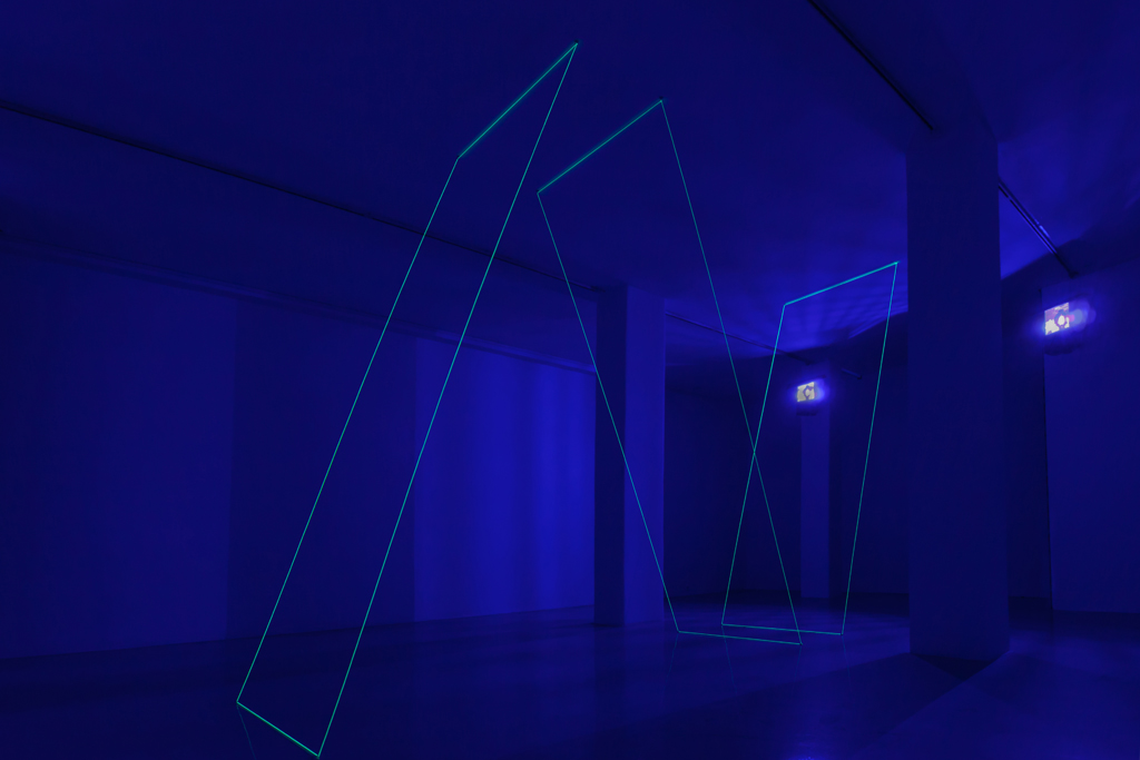Between You and Me podseća na svetla u tunelu koji se naginje ili uzdiže stvarajući kaleidoskopski efekat dubine, kretanja i zakrivljenosti prostora. Tri svetlosne aperture poput softverskog 3D wireframe-a formalno pripadaju genealogiji svetlosnih instalacija Chrisa Frasera (posebno podsećajući na spektrometarsku instalaciju In Passing ), ili pojednostavljenom i svedenom James Turell-u (setimo se ovoidnih svetlosnih instalacija za Guggenheim, ili Light Tunnel u Museum of Fine Arts, Hjuston). Karakterističnu reflektivnu boju stvara svetlost limitirane, ‘kockaste’ talasne dužine, unoseći distopičnu sci-fi melanholiju u geometrijski prostor. Ono sto Ana naziva frekvencijom prostora je talasna dužina boje svetlosti propraćena zvučnim signalom u geometrijsko-ritmičkom odnosu prilagodjenom dimenzijama galerijskog prostora.